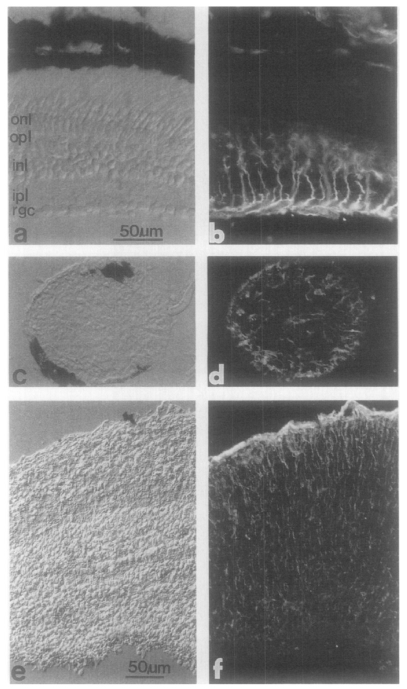 among the optic fibers. (E, F) Section of tadpole optic tectum labeled