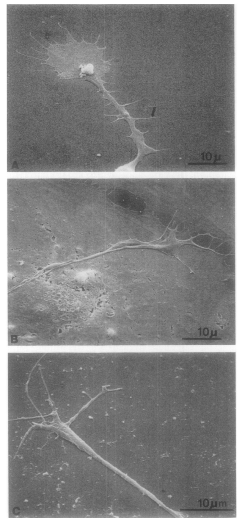 FIG. 7. Scanning electron micrographs of Xenopus retinal neurons