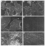 Scanning electron micrograph of an XRl conditioned collagen substrate. Calibration bar, A-E, 25 pm; F, 5 pm. |