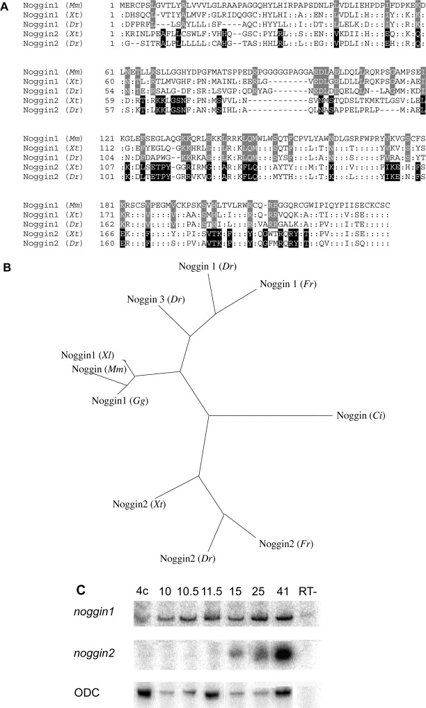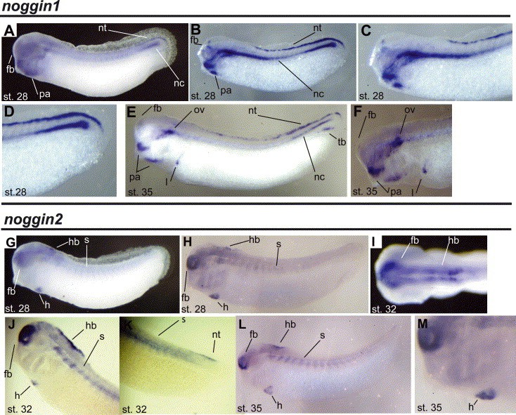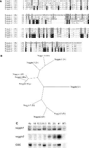 Expression of Xenopus tropicalis noggin1 and noggin2 in early development: two noggin genes in a tetrapod.