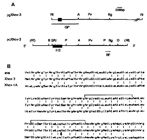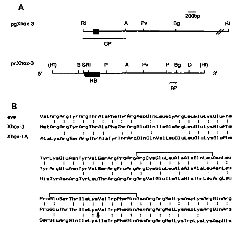 Fig. 1. (A) Xhox3 genomic and cDNA plasmid clones. The