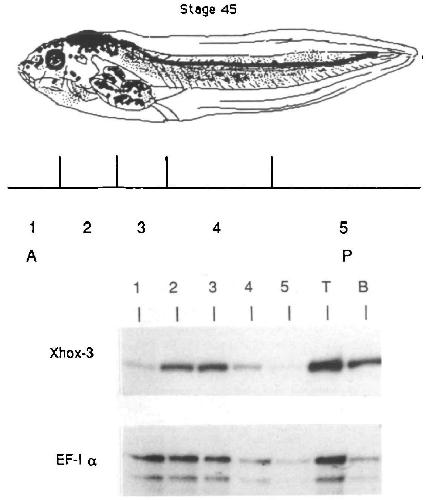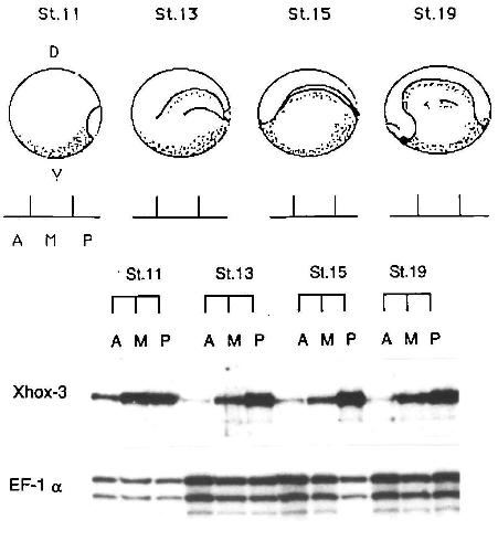 Xhox3 and EF-la transcripts. Ten and one embryos were