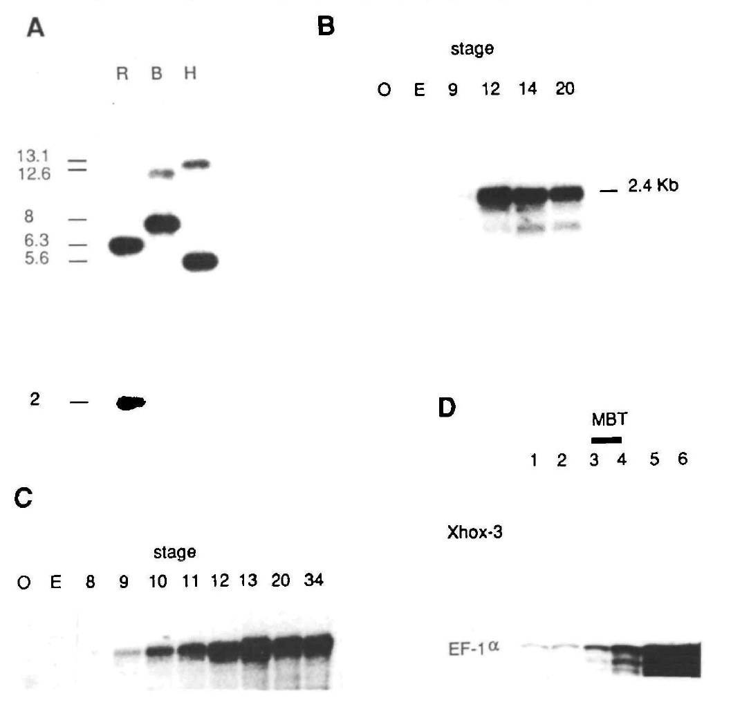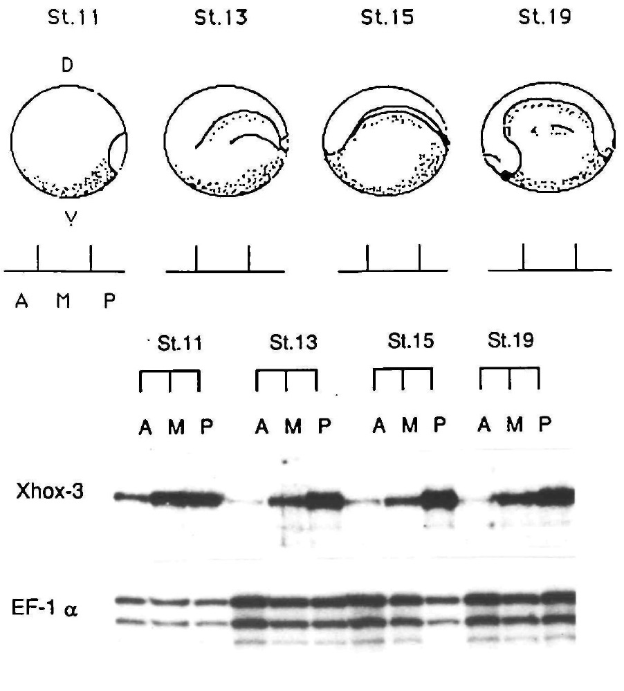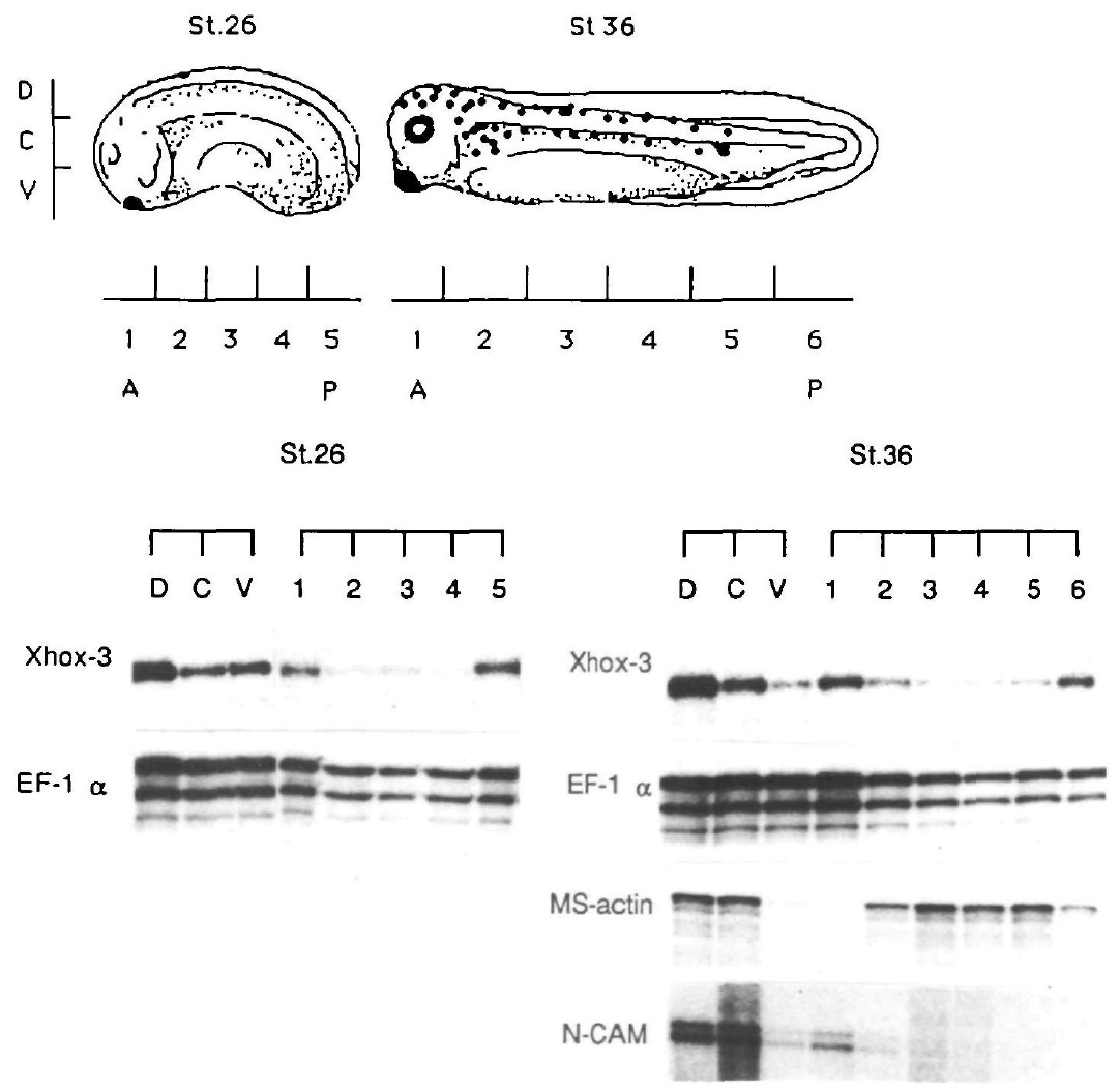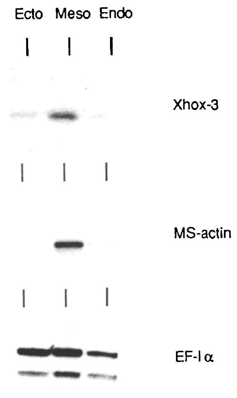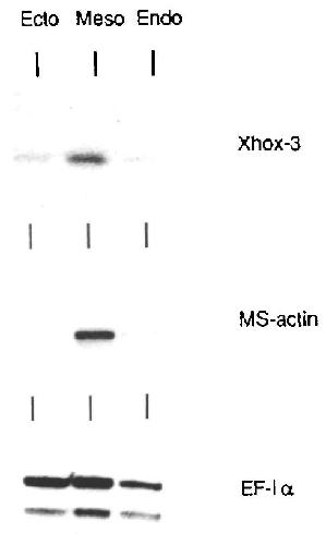 Xhox3, muscle-specific actin and EF-la transcripts by
