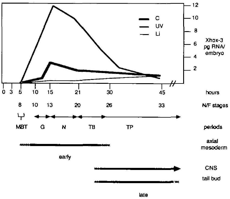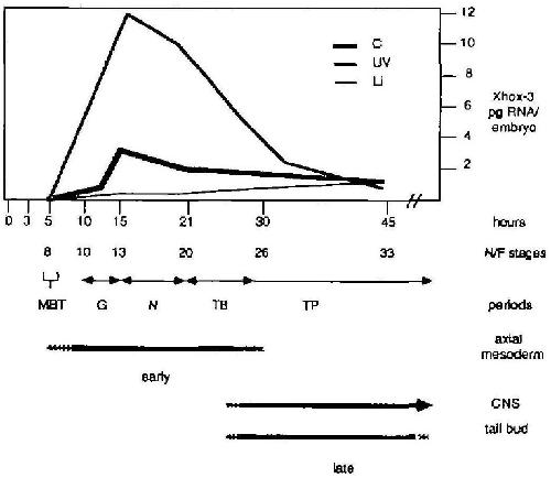Fig. 8. Xhox3 expression in u.v. and Li treated embryos.