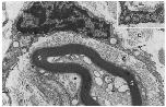 in an irregular and discontinuous fashion. Note also the numerous vesicles in the perineurial cell. Bur, 0.5 pm |
