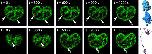Figure 6. 4-D – tracking of vimentin particles in the nucleus. (a, b) particles with restricted movement (confined diffusion) c) corralled particle and corresponding trajectories. (red = vimentin bodies; green = Hoechst 33342 staining).