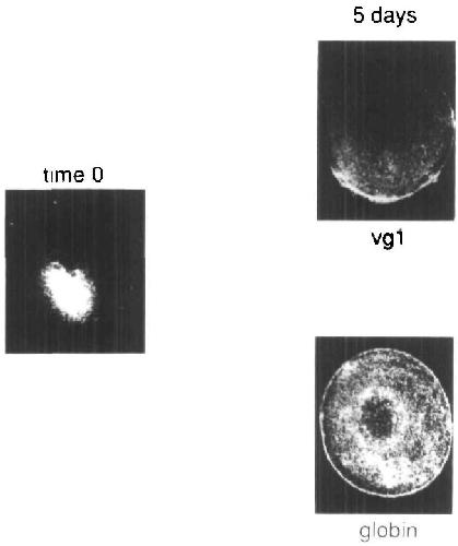 The maternal mRNA Vg1 is localized to the vegetal pole during oogenesis in Xenopus. We have cultured oocytes in vitro to begin to understand how this localization occurs. Endogenous Vg1 mRNA undergoes localization when oocytes are cultured in vitro, and synthetic Vg1 mRNA injected into such oocytes is localized in the same fashion. Vg1 mRNA is associated with a detergent-insoluble fraction from homogenized oocytes, suggesting a possible cytoskeletal association. The use of cytoskeletal inhibitors reveals a two-step process for localizing Vg1 mRNA. Microtubule inhibitors such as nocodazole and colchicine inhibit the localization of Vg1 mRNA in late stage III/early stage IV oocytes, but have no effect on Vg1 mRNA once it is localized. The microfilament inhibitor cytochalasin B, however, has little effect on the translocation of Vg1 mRNA in middle-stage oocytes but causes a release of the message in late-stage oocytes. We propose a model for the localization of Vg1 mRNA in which translocation of the message to the vegetal cortex is achieved via cytoplasmic microtubules and the anchoring of the message at the cortex involves cortical microfilaments.
