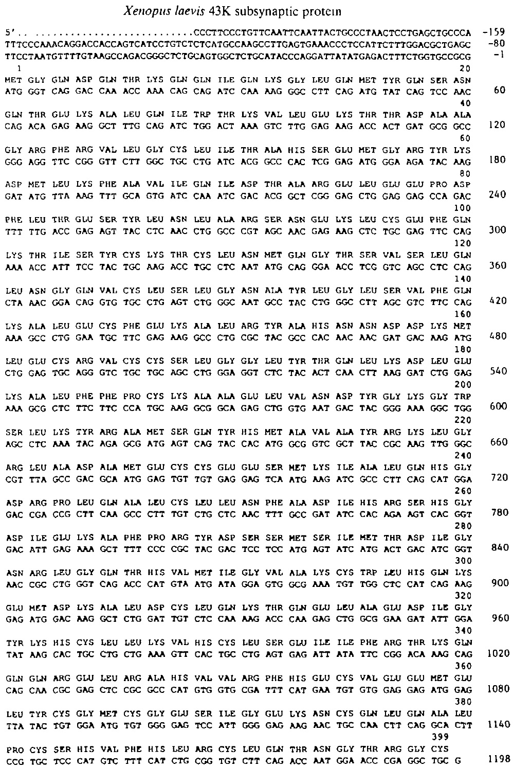 Fig. 3. cDNA encoding the 43K