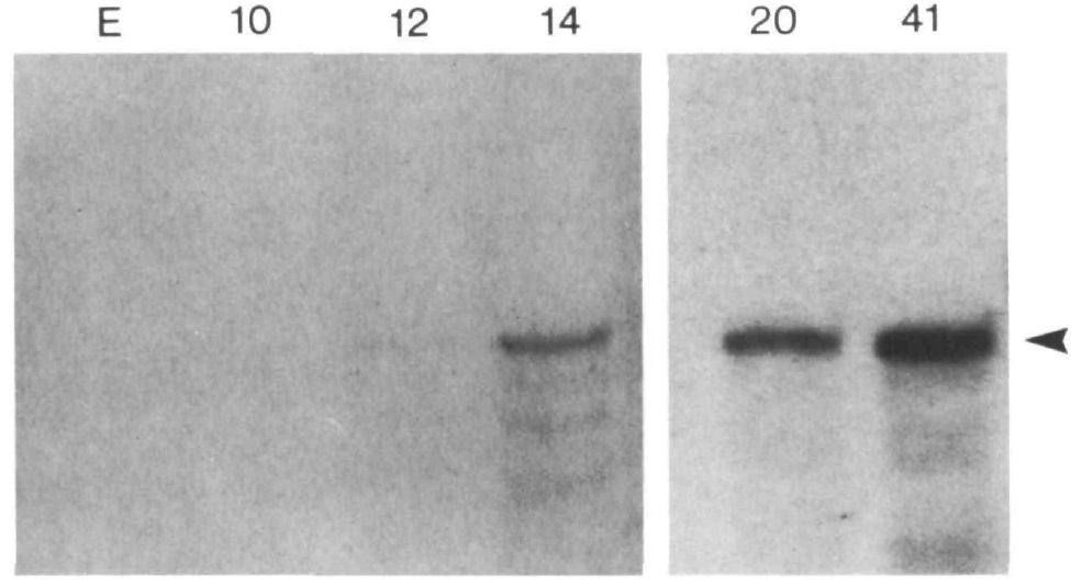 later stages (20 and 41) included RNA from 10 embryos. The gel was exposed to X-ray film with an intensifying screen