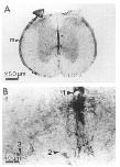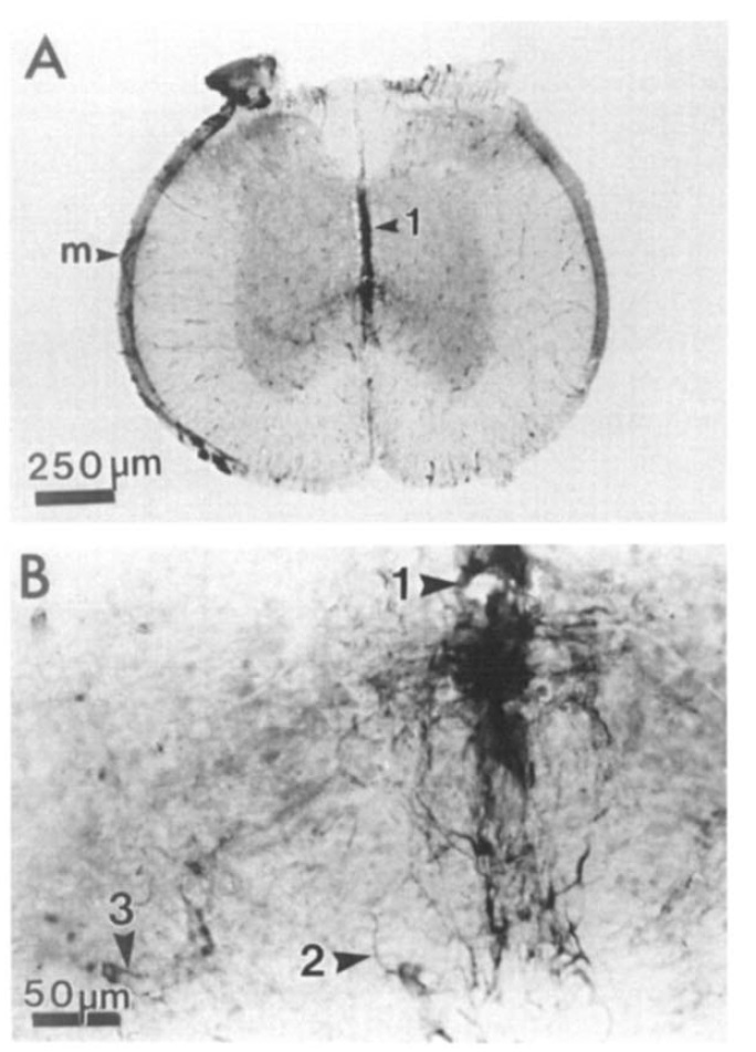 intense in the meninges (m), and in dense processes lining the
