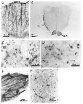 away from that shown in panel C, illustrating axons filled with XNF-M antibody immunoreactivity, E: a frozen section cut through a
