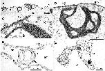 Fig.5. NLS-MT-GFP-N-Ras chimeras induce formation of intranuclear membrane arrays in HeLa cells. (A-D) HeLa cells transiently transfected with NLS-MT-GFP-N-Ras were processed for EM 24 hours after transfection. Sections were stained with uranyl acetate and lead citrate. Note the formation of stacked membrane cisternae aligned with the nuclear envelope as well as the formation of membrane arrays within the nucleoplasm. NE, nuclear envelope; PM, plasma membranes. Bar, 5 μm (A); 1 μm (B-D).