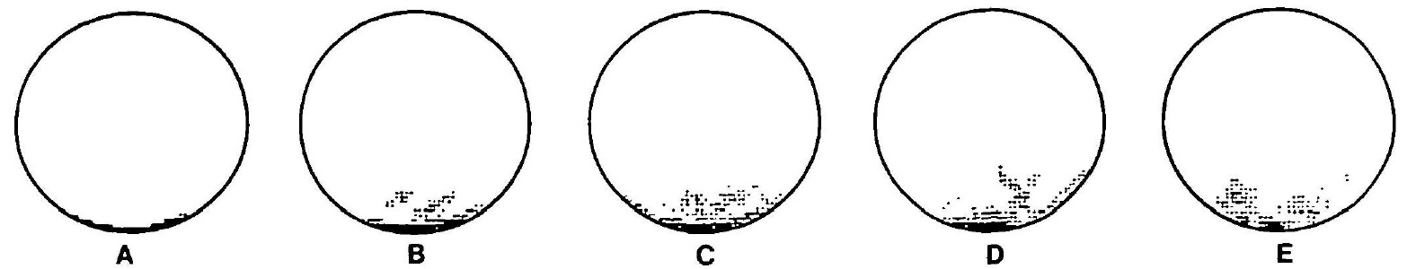 sectioned and stained for germ plasm. The position of each patch of germ plasm was plotted as a point on a circle