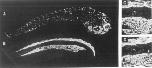 (A) Normal embryo. (f3) Dorsal view of a group of Xhox-1A injected embryos showing various examples of the kinked external phenotype. (C) Lateral view of a Xhox-IA injected and kinked embryo.