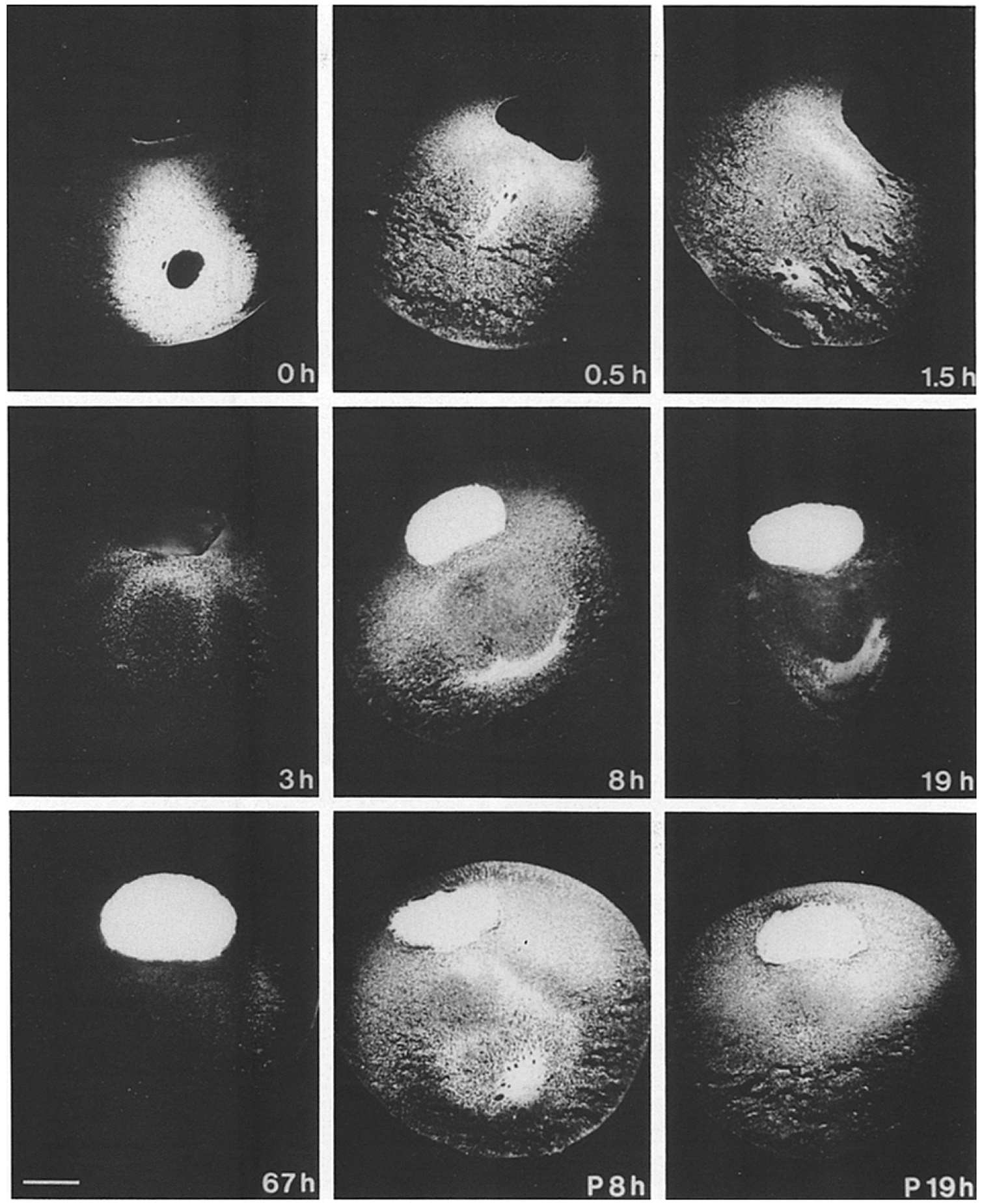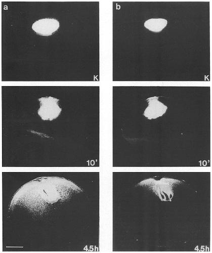 with mAb b6-3BT, which is directed against X. borealis nuclear protein NI. Dark areas that are seen in the injected nucleoplasm (see 0 h)