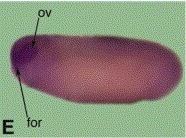 stain associated with the CNS with increased intensity anteriorly in the optic regions. Faint signal is also present in the posterior end of the embryo. (D) Stage