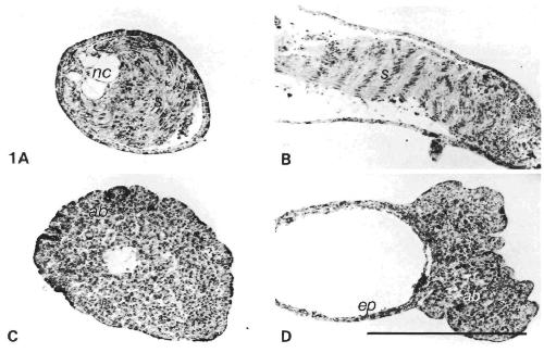 medium, nc, notochord; s, somite; ab, abnormal, wrinkled epidermis; ep, properly stretched, bilayered epidermis over a