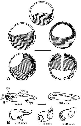 Fig. 5. Injection of poly(A)+ RNA from XTC, but not XL, cells into animal pole blastomeres causes mesoderm
