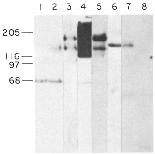 antibody anti-Xenopus N-CAM. Lanes 7and 8, material immunoprecipitated