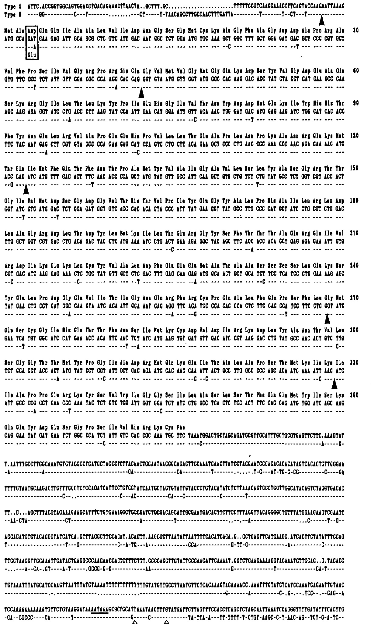 Fig. 2. Nucleotide sequence of type-5 and type-8
