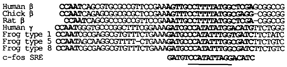 CCAAT box from various vertebrate cytoskeletal actin genes is shown. (The human y-actin gene promoter sequence is