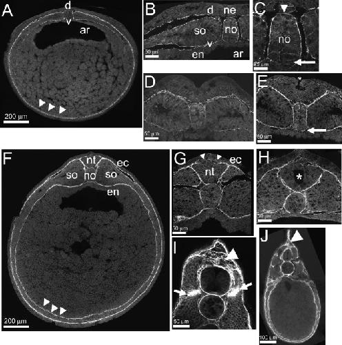 ec, ectoderm; en, endoderm; ne, neural plate ectoderm; no, notochord; nt, neural tube; so, somitic mesoderm; v, ventral.