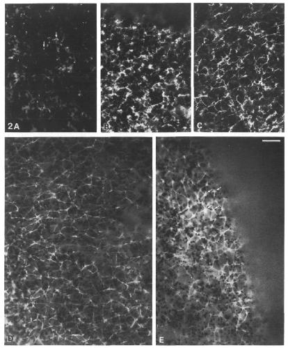 clean glass needle. Cytokeratin labelling appeared first as a pattern of spots (A, 30min postactivation) which later was