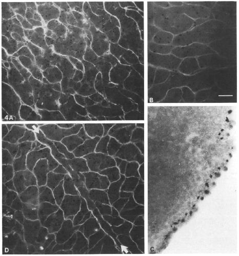black), it is clear that the cytokeratin system is entirely cortical. Bar in part B marks 10/jm for all parts.