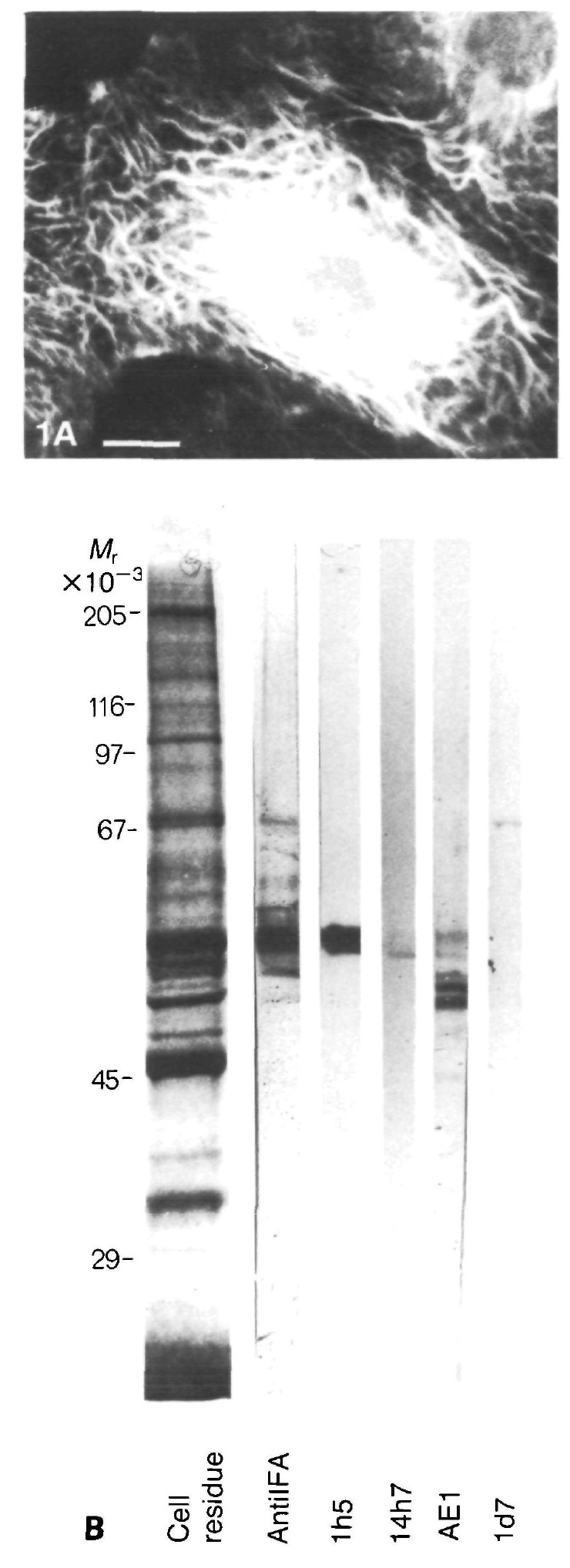 Ih5 labels cytokeratin filaments (Bar, lOjjm).