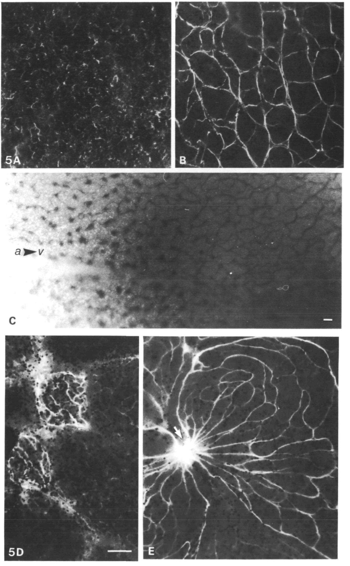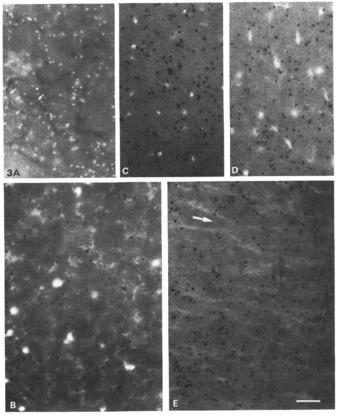 in part D marks lOjnn for parts A,B,D,E; bar in part C marks 10/im.