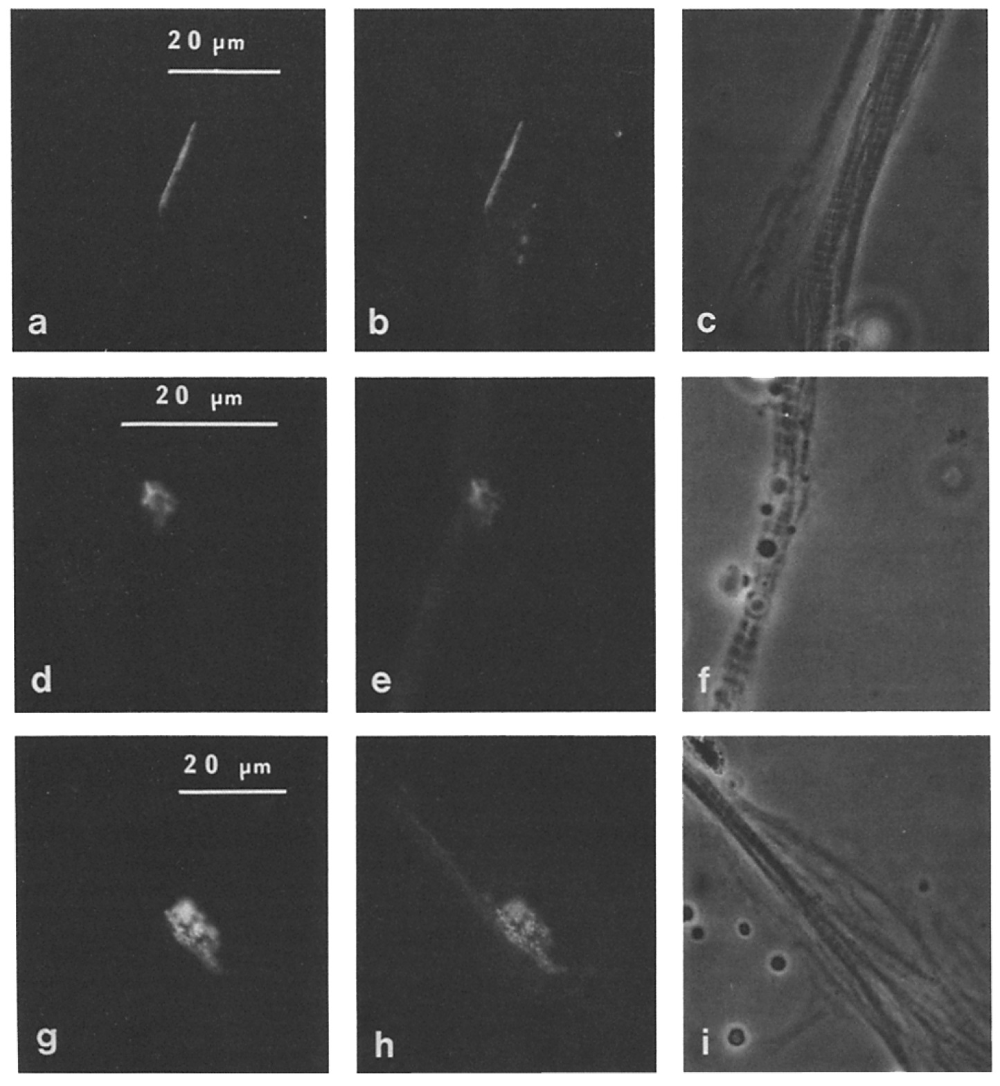 without corresponding rhod-toxin staining can be seen in B. Bars: (A-C) 20 um; (D-F) 20 um; (G-l) 20 um.