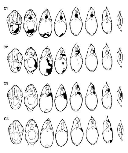 Fig. 7. 3D reconstructions of typical cases resulting from orthotopic grafts of animal pole regions.