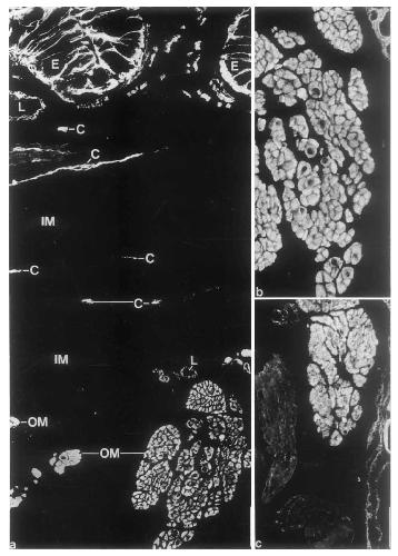 are completely negative. b Higher magnification of cross-section through a bundle of the outer smooth-muscle layer (as in bottom