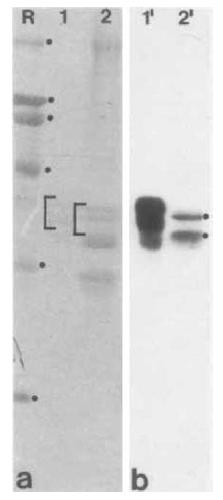 Fig. 6a, b. Immunoblotting identification of cytokeratins in smooth
