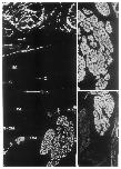 region from the same tissue, showing a reaction with cytokeratin antibody lu-5. Three blood vessels display the moderate and heterogeneous