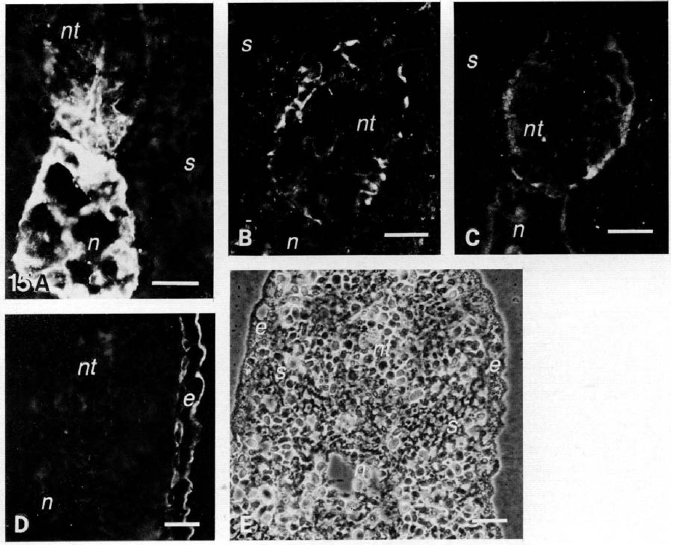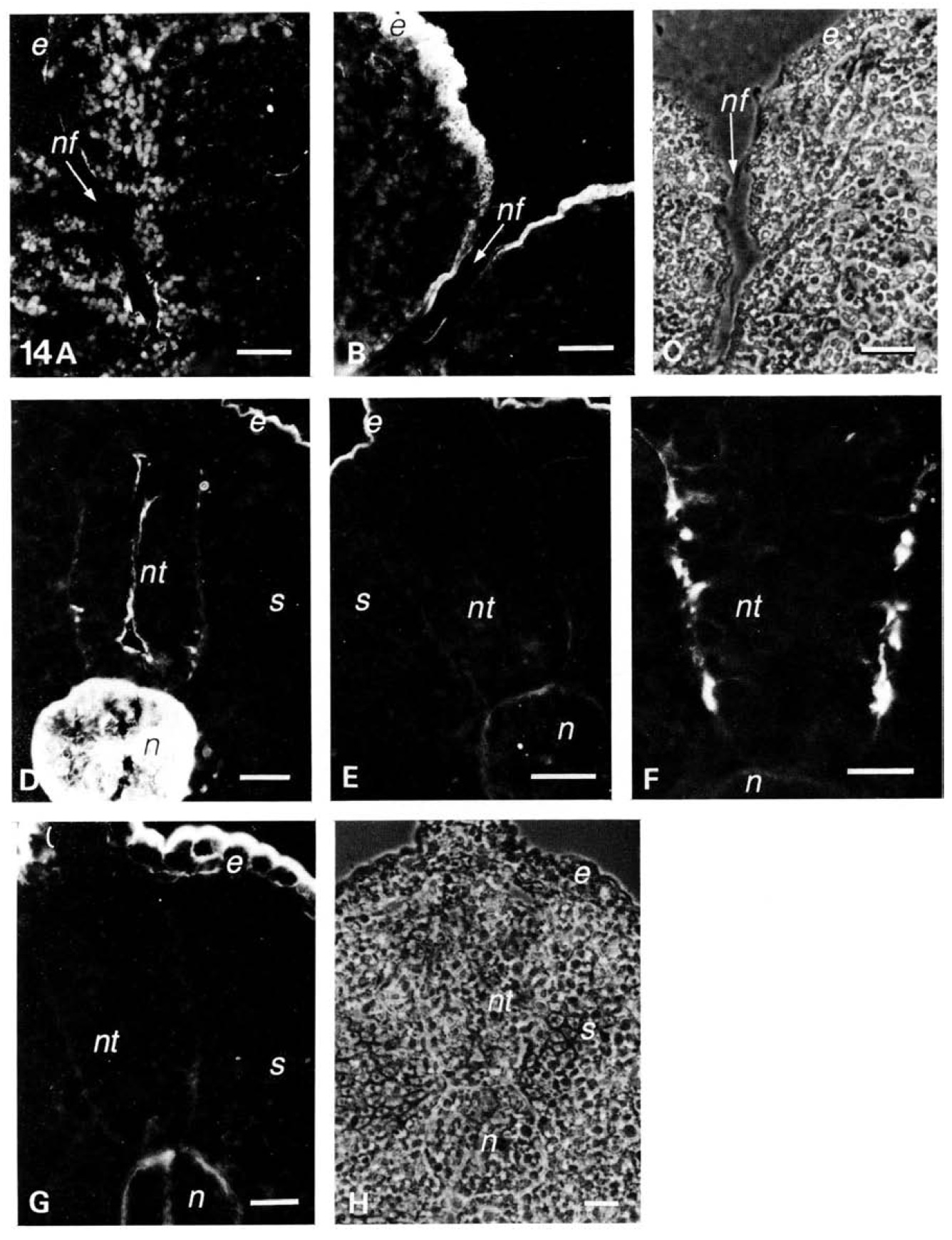 neural tube. Abbreviations: nt, neural tube; s, somites; n, notochord; e, epidermis.