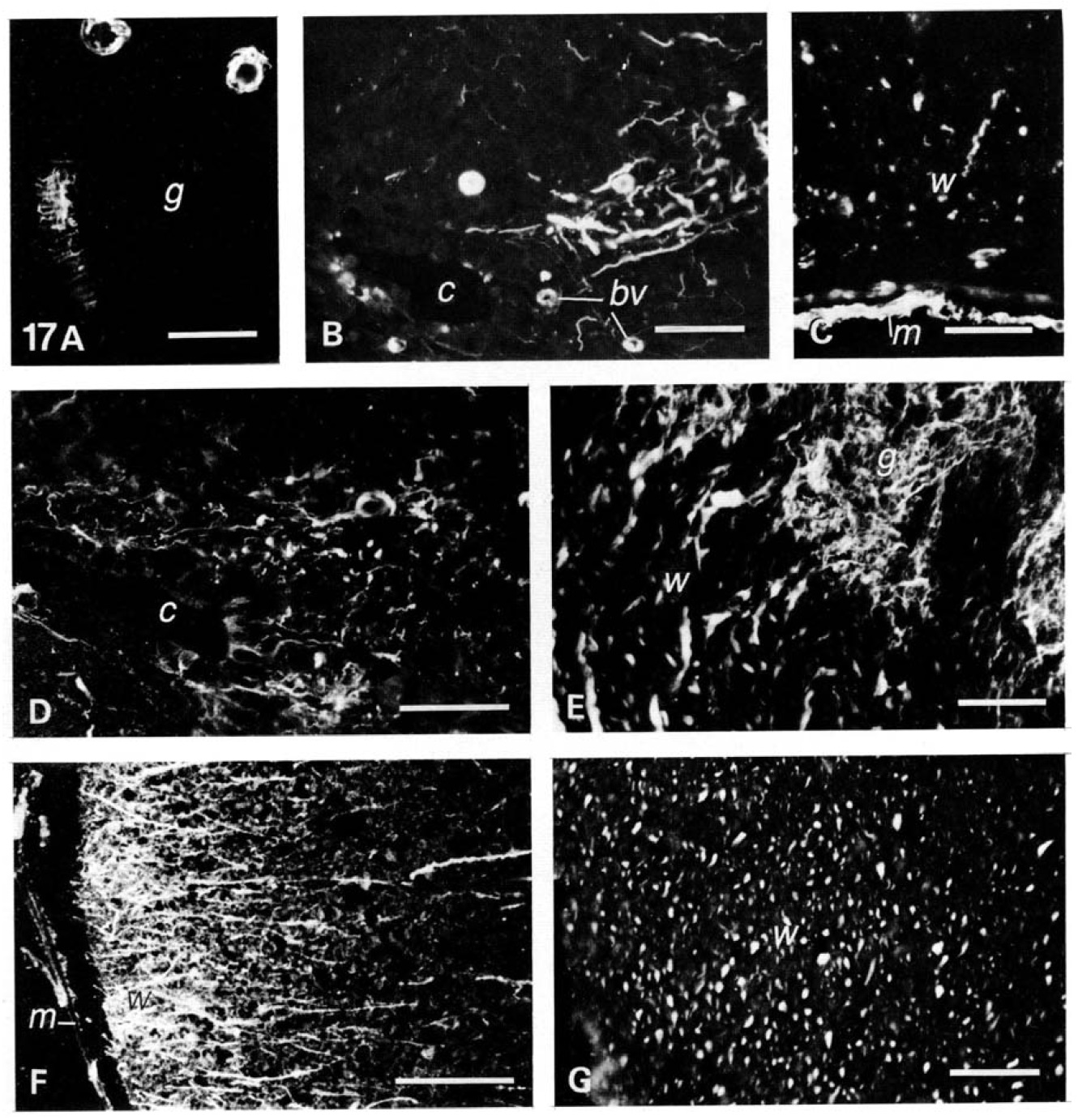 Abbreviations: w, white matter; g, grey matter; m, meninges; bv, blood vessels;