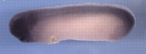 smad2 (SMAD family member 2 ) gene expression in Xenopus laevis embryo, assayed via in situ hybridization, NF stage 26, lateral view, anterior left, dorsal up.