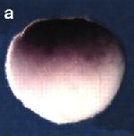 smad2 (SMAD family member 2 ) gene expression in Xenopus laevis embryo, assayed via in situ hybridization, NF stage 6.5 , lateral view, animal pole up. |