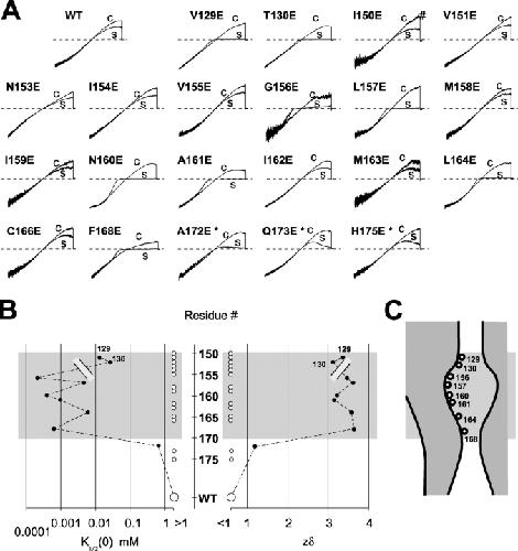 Nimigean, Electrostatic tuning of ion conductance in potassium channels. 2003, Pubmed , Xenbase