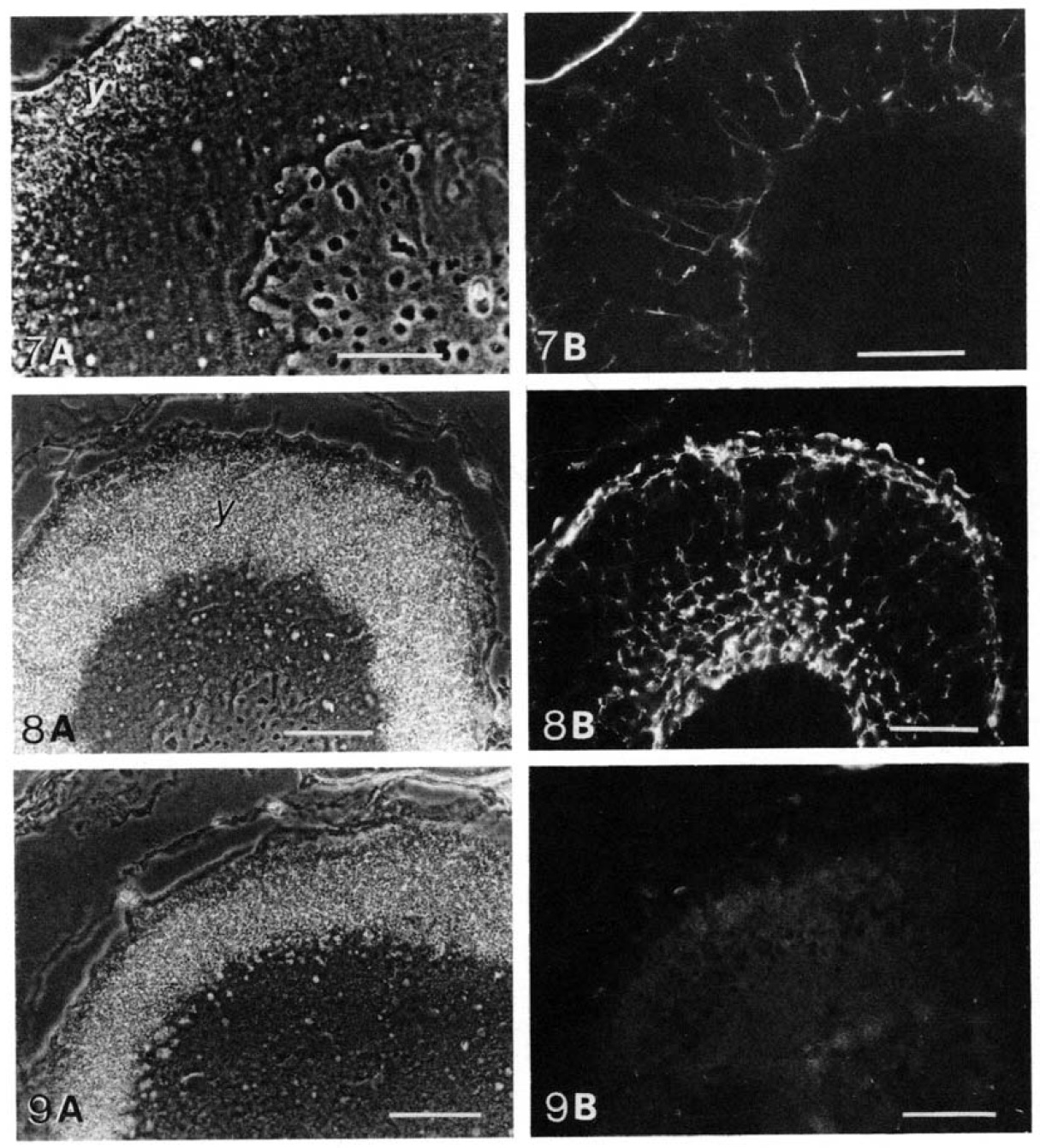 (A) phase contrast; (B) fluorescence, y, yolk platelets. Fig. 8. Mid-vitellogenic