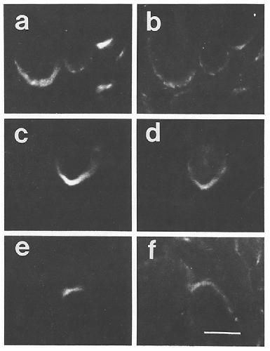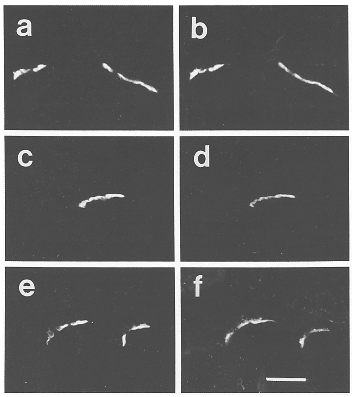 by the antibodies. Some weak extrajunctional staining is also apparent in a and e; staining of the contractile apparatus is evident