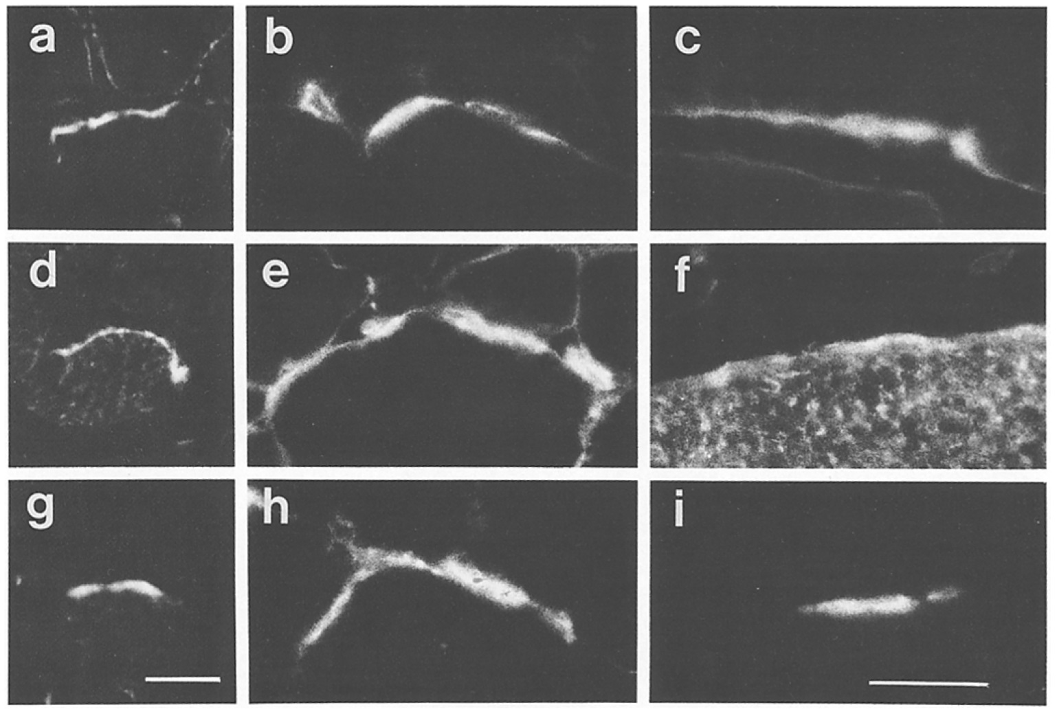 in f, and, more faintly, in d. Bars, 20 pm. The bar in g also applies to a and d, and the bar in i applies to the rest of the panels. |