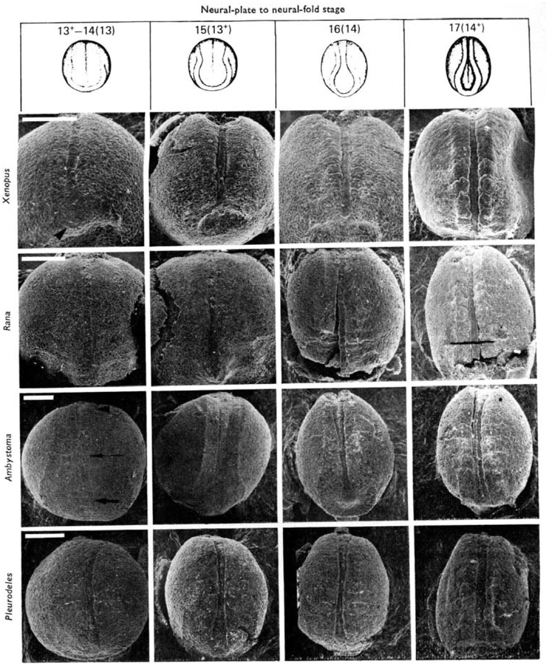 displays the progress made by the neural folds of Ambystoma early neurulae viewed