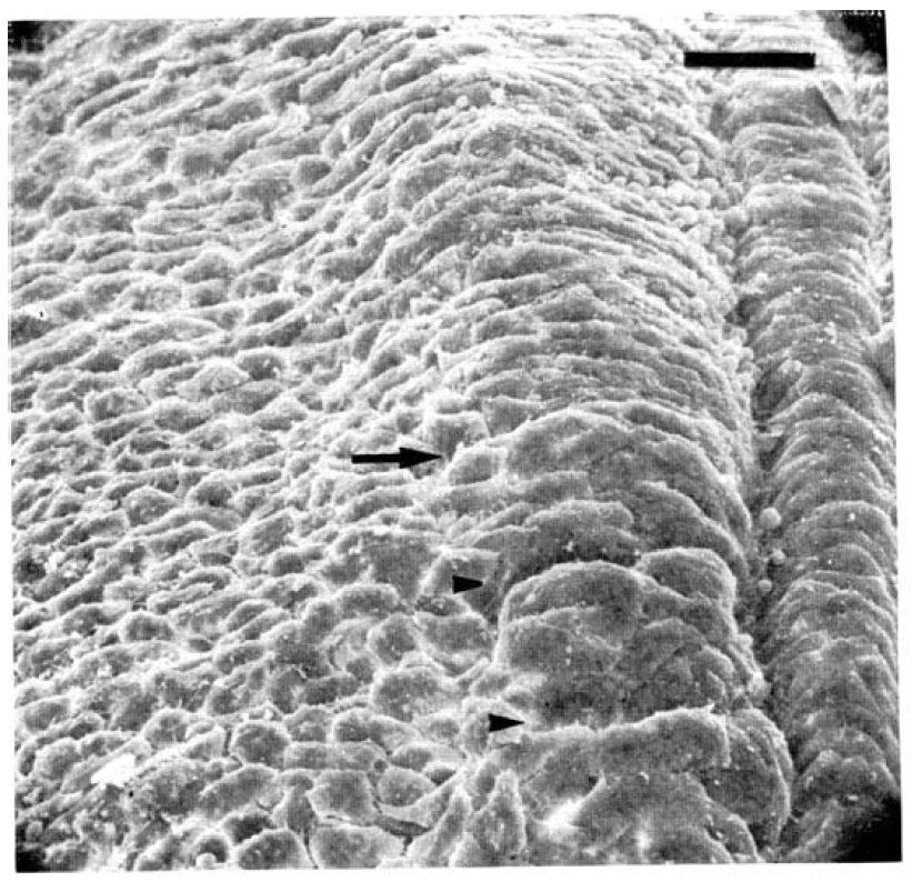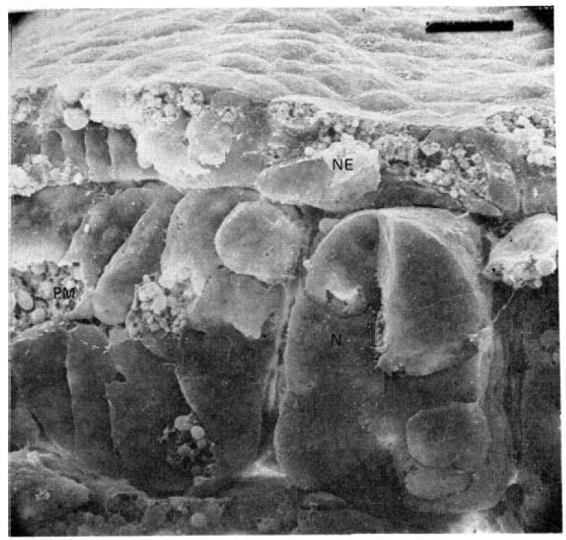 Fig. 2e. Lateral surface of the Xenopus notochord at stage 12+. Endodermal roof