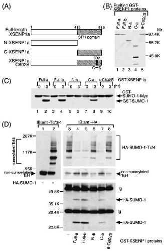 GST-C-XSENP1a (lane 7), or GSTXSENP1aC602S