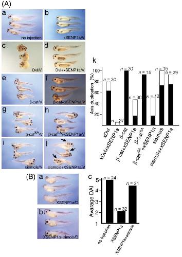 Figure 4 Injection effects of XSENP1s and XSENP1a mutants. (A) (aâf ) Phenotypes of embryos injected with mRNAs as follows;