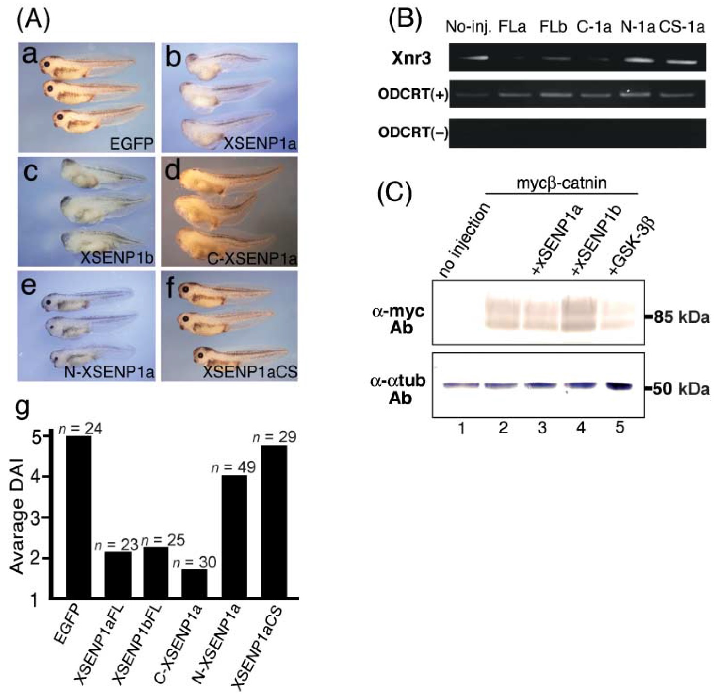 full-length XSENP1a, full-length XSENP1b, C-XSENP1a, N-XSENP1b and XSENP1aC602S, respectively. (C) Alteration of β-catenin