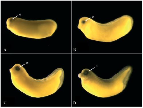the developing eye (e). Expression in the