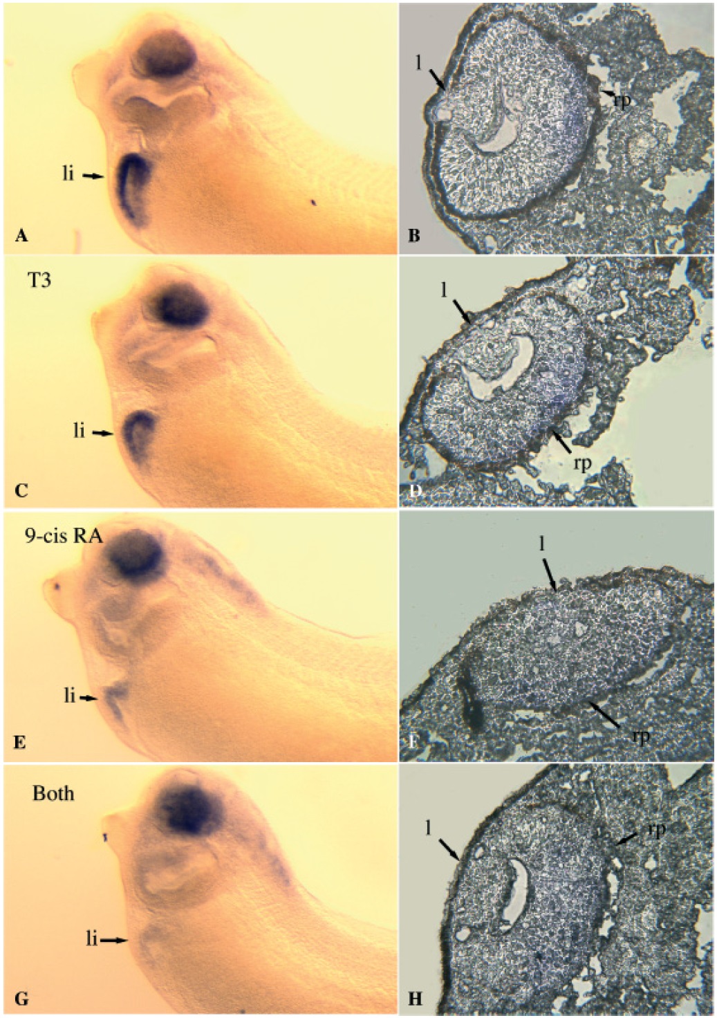 both T3 and 9-cis RA (G, H) were not